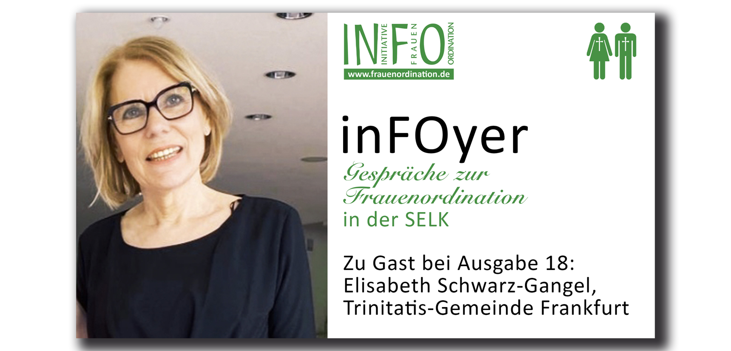 Die Initiative Frauenordination in der SELK (InFO) lädt zum Austausch über die Rolle von Frauen in unserer Kirche ein. In Ausgabe 18 der Online-Gesprächsreihe „inFOyer“ ist Elisabeth Schwarz-Gangel aus der Frankfurter Trinitatis-Gemeinde zu Gast. Die Kirchenmusikerin unterrichtet seit vielen Jahren Stimmbildung und Liturgischen Gesang an der Lutherischen Theologischen Hochschule in Oberursel und arbeitet als Kirchenmusikerin in SELK- und landeskirchlichen Gemeinden. Mit Michael Sommer von der Initiative Frauenordination unterhält sie sich über ihren Werdegang, ihre Arbeit, Musik als Verkündigung, die Zusammenarbeit mit Pfarrerinnen und wie es ist, als Frau an der SELK-Hochschule zu unterrichten. „inFOyer“ Nr. 18 wird am