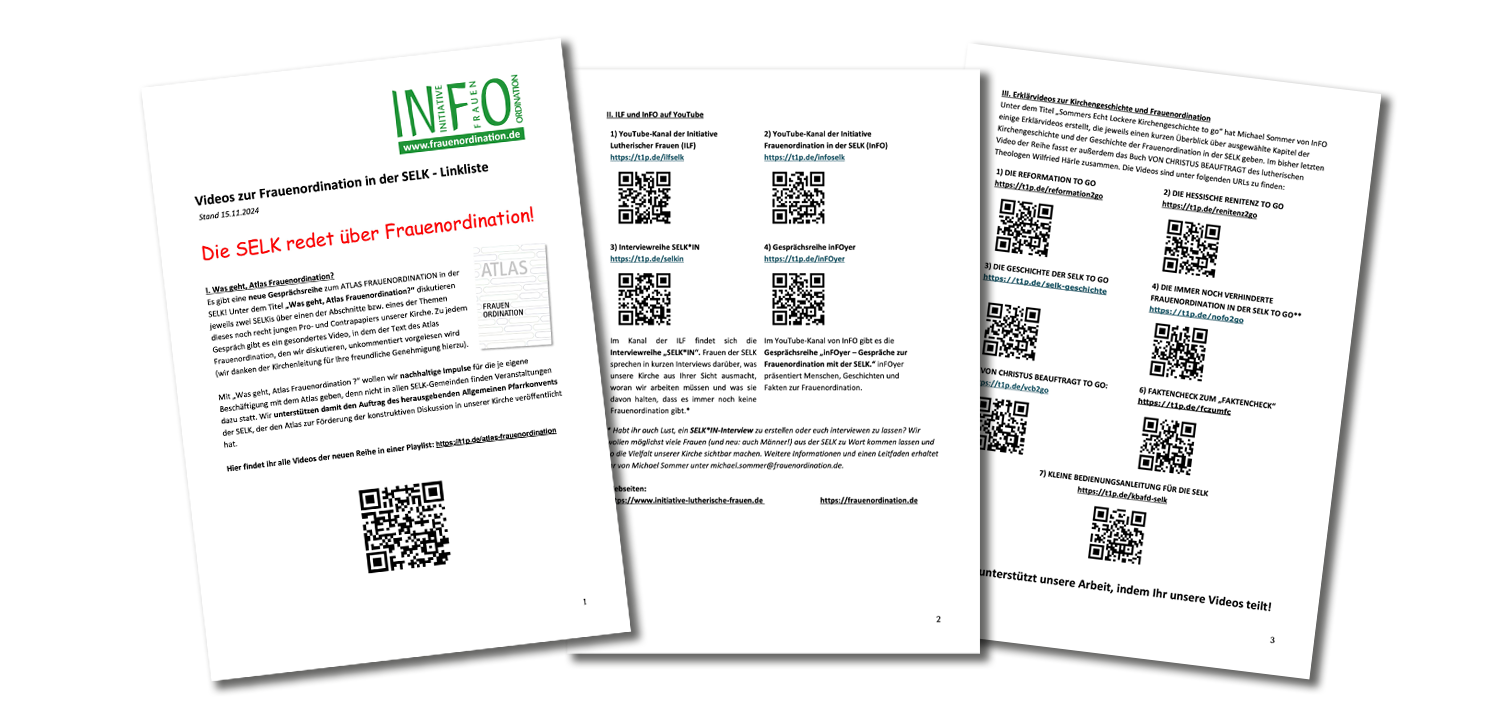 Die SELK redet über die Frauenordination und die Initiative Frauenordination (InFO) unterstützt euch dabei! Zum Beispiel mit Aushängen zum Ausdrucken für euren Gemeindesaal bzw. Info-Bretter.