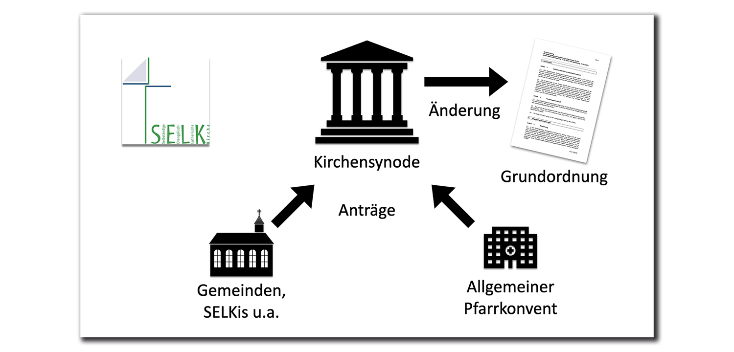 Im Gegensatz zum Bekenntnisstand können Lehrentscheidungen der Kirche geändert werden. Da die „implizite Lehrentscheidung“ zur Frauenordination in der Grundordnung festgehalten ist, kann nur die Kirchensynode eine Änderung hieran beschließen. So lautet Grundordnung Art. 25 Abs. 5 „Die Kirchensynode beschließt über die Anträge, die an sie gerichtet werden. Insbesondere gehört es zu ihren Aufgaben: (…) b) über Fragen der Lehre, des Gottesdienstes und der kirchlichen Praxis zu beraten und zu darüber gefassten Beschlüssen des Allgemeinen Pfarrkonventes Stellung zu nehmen; c) über gesamtkirchliche Ordnungen, einschließlich Abänderungen der Grundordnung, zu beschließen (…).“